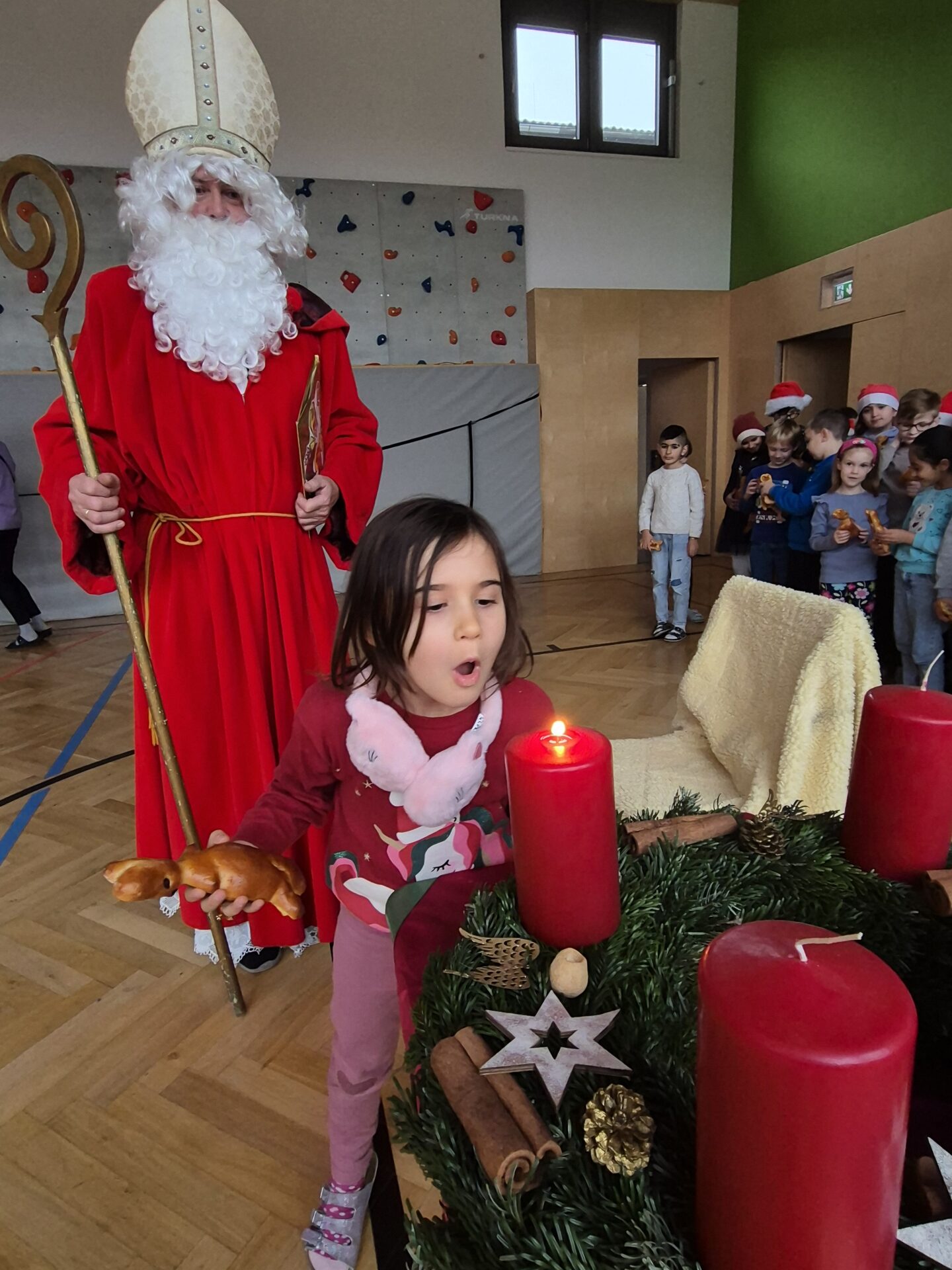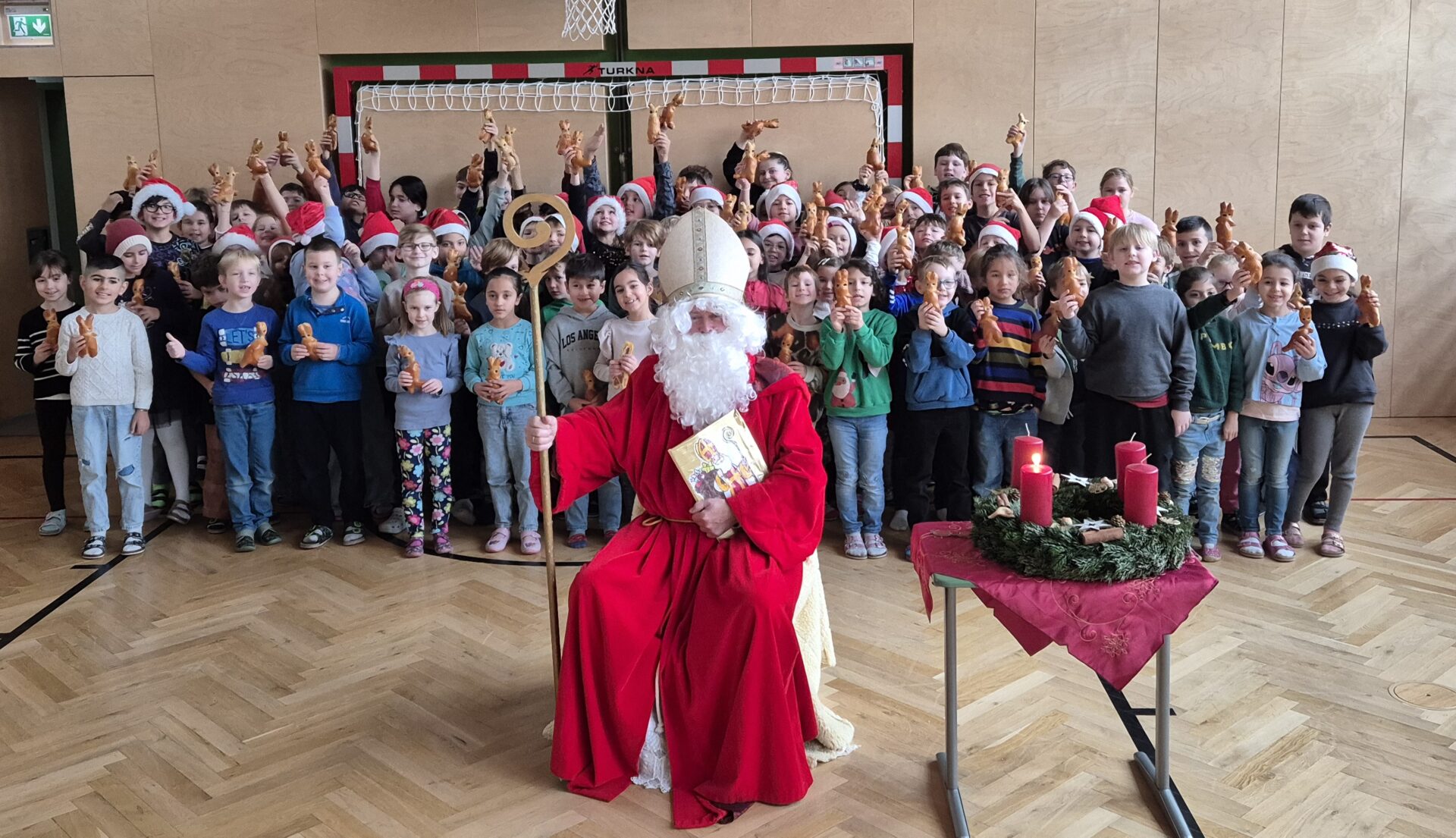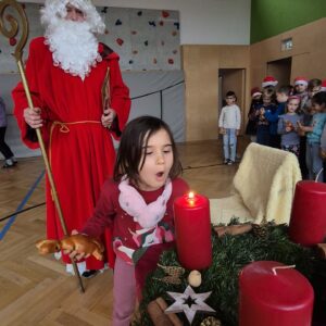 Am 6.12. kam uns der Nikolaus besuchen, er hat uns die Nikolauslegende vorgelesen und die Kinder aller Klassen freuten sich ihm Lieder und Gedichte vorzutragen. Belohnt wurden die Kinder mit einem essbaren Krampus. Glück hatten wir, dass der echte Krampus den Nikolaus heuer nicht begleitet hat. Vielleicht ja nächstes Jahr?