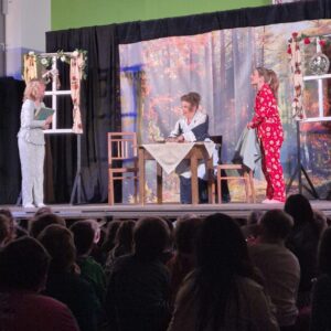Die Kinder der VS Viehofen konnten eine Aufführung des Lenautheaters: „Schneeweißchen und Rosenrot“ genießen. Ein ängstlicher Weihnachtself, der Weihnachtsmann, Schneeweißchen und Rosenrot, ein grantiger böser Zwerg und ein Hase, der miauen konnte, retten schlussendlich Weihnachten!